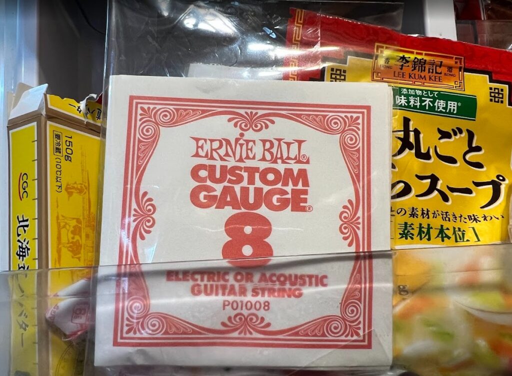 アーニーボールの008の予備を10本セットで買っておくのだけど、これが、1本交換して、気が付くと残りの本が錆びているという。。涙